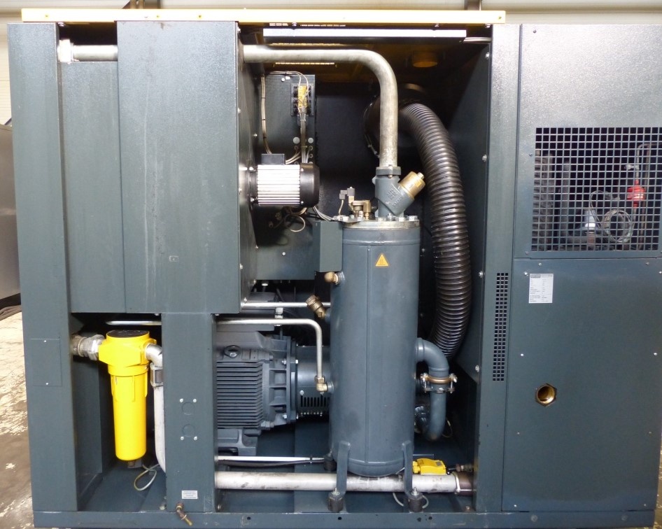 | Compresor cu surub si uscator aer prin refrigerare incorporat, bloc compresie nou reconditionat, rulmenti motor antrenare noi. Garantie generala echipament 6 luni. Stoc Romania. |